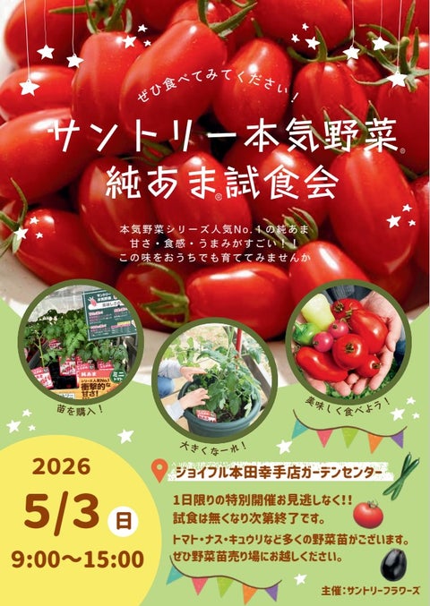 この味をおうちでも育ててみませんか?1日限りの特別開催なのでお見逃しなく!!試食のトマトは無くなり次第終了となります。