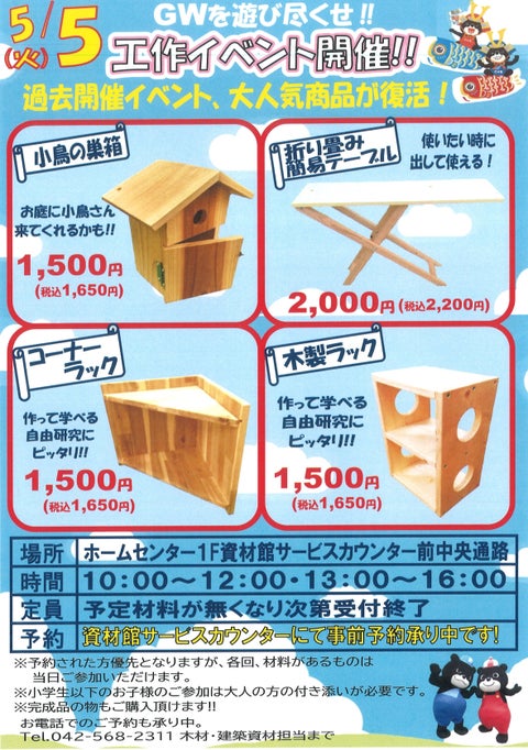 小鳥の巣箱・折り畳み簡易テーブル・コーナーラック・木製ラックが今回の作成品となります。