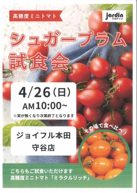 とっても甘い高糖度トマトのシュガープラムをご試食ください。