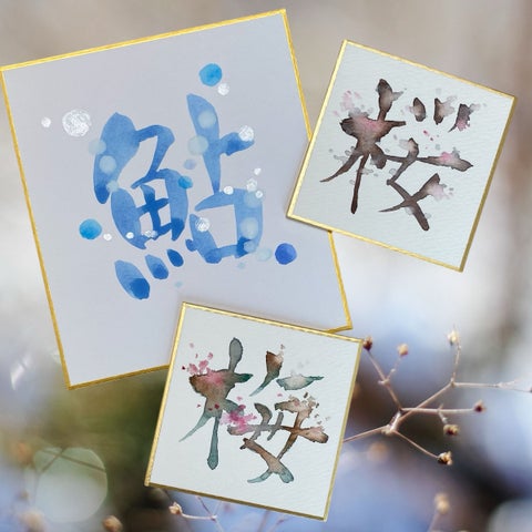 文字を顔彩で趣豊に彩る新感覚アート。言葉や色を選ぶ楽しさ、発色やにじみの美しさを味わいましょう。