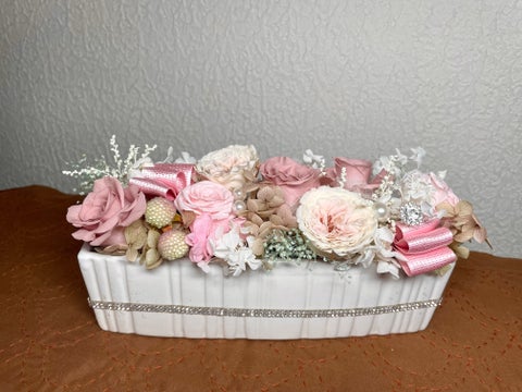 アモローサ クララというオールドローズのプリザーブドを使用してクラシカルなアレンジに仕上げます。ご自宅用や、母の日の贈り物としても最適です。フラワーアレンジに挑戦してみたい方、先生に教わりながら素敵なアレンジを作りましょう。