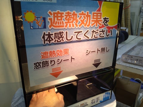 遮熱タイプは貼った場合と貼らない場合でどれだけ温度が違うかを体験もできます!!