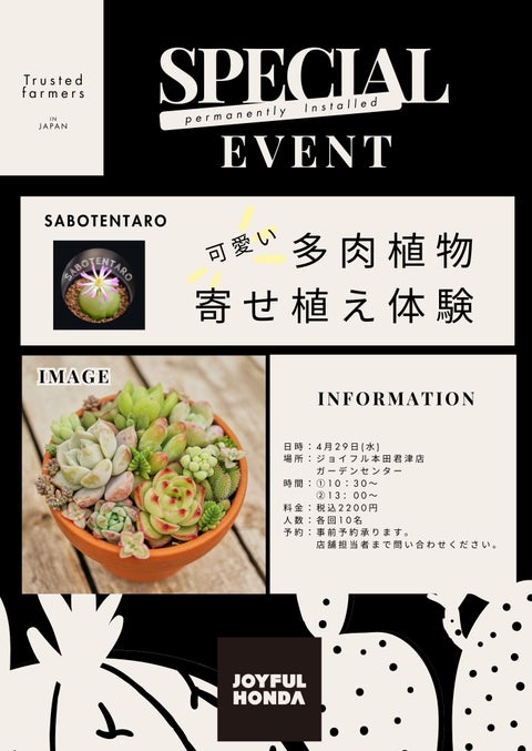 多肉植物は種類と色が豊富です。ぜひこの機会にリニューアルオープンしたガーデンセンターへお越しください。