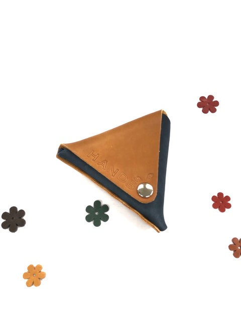 ①サンカクケース・カードケース:1100円②レザーチャーム:500円 |